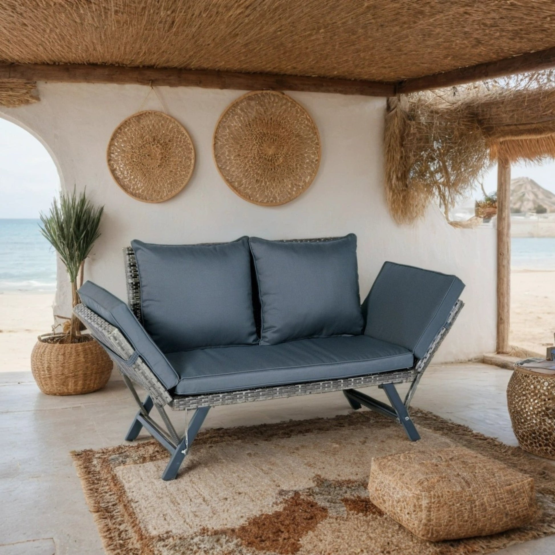 - STYLISH & BEATIFUL : Modern and stylish combination with grey wicker and dark grey cushion make this patio seating bench look fashionable and add the beauty for your courtyard which is perfect for any outdoor and indoor use.