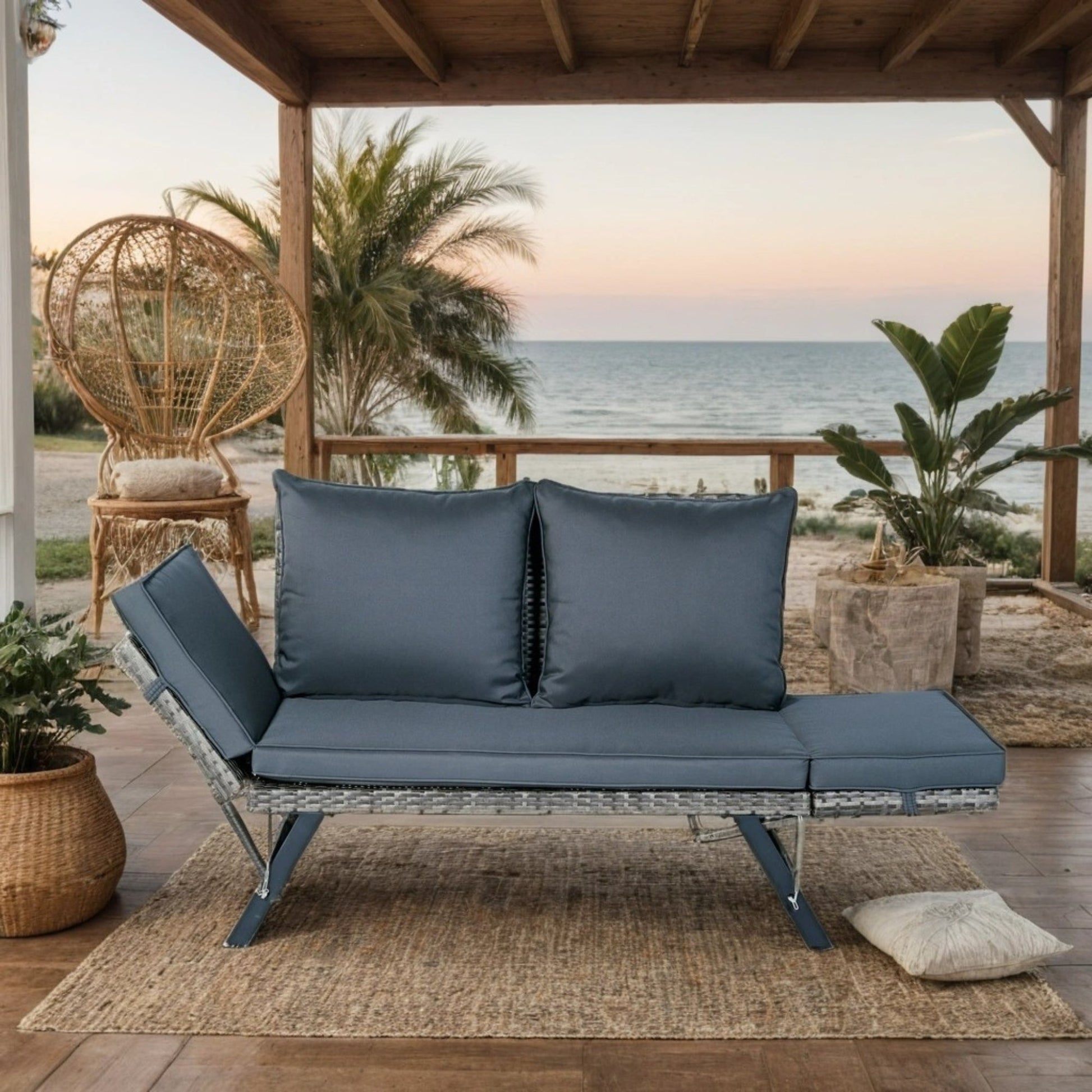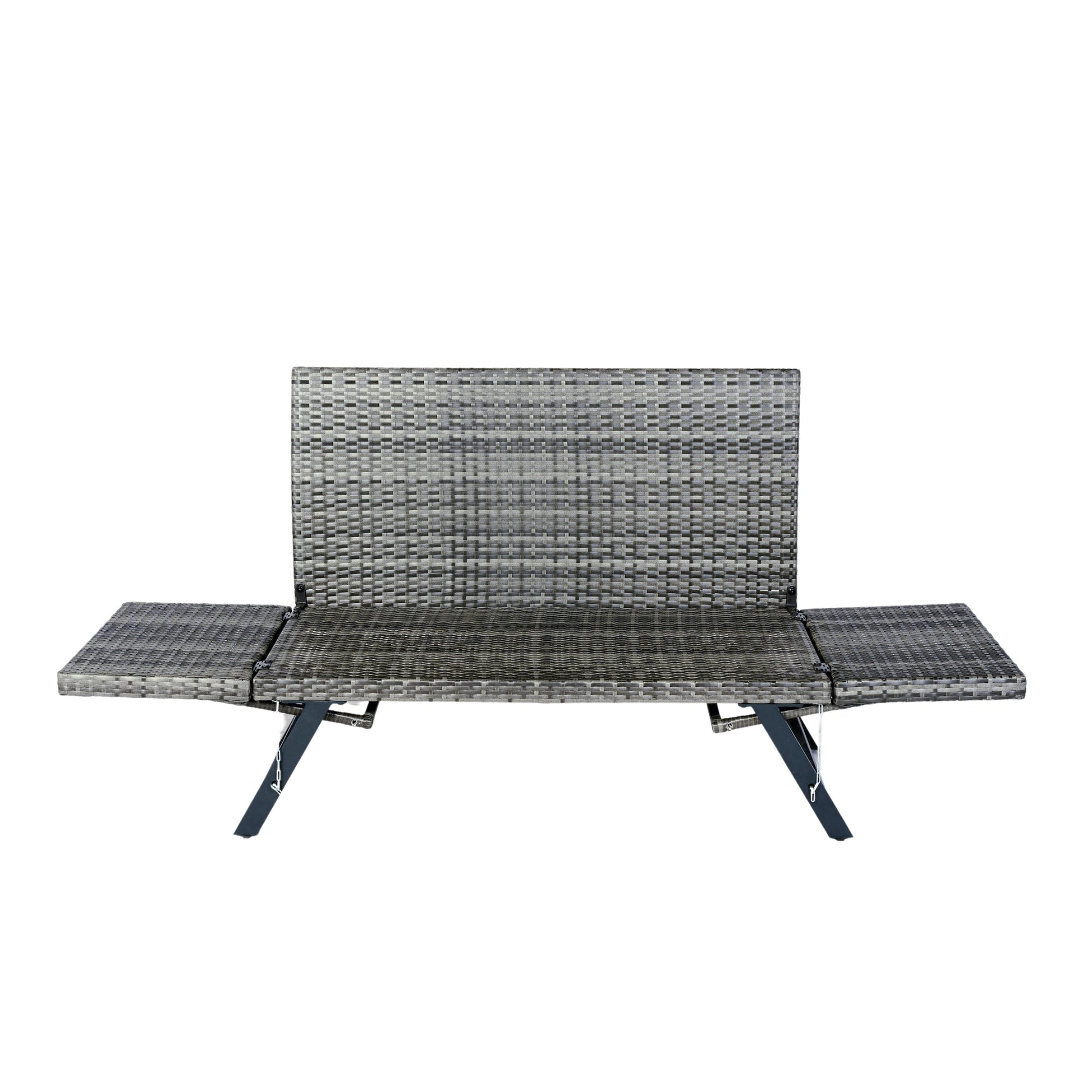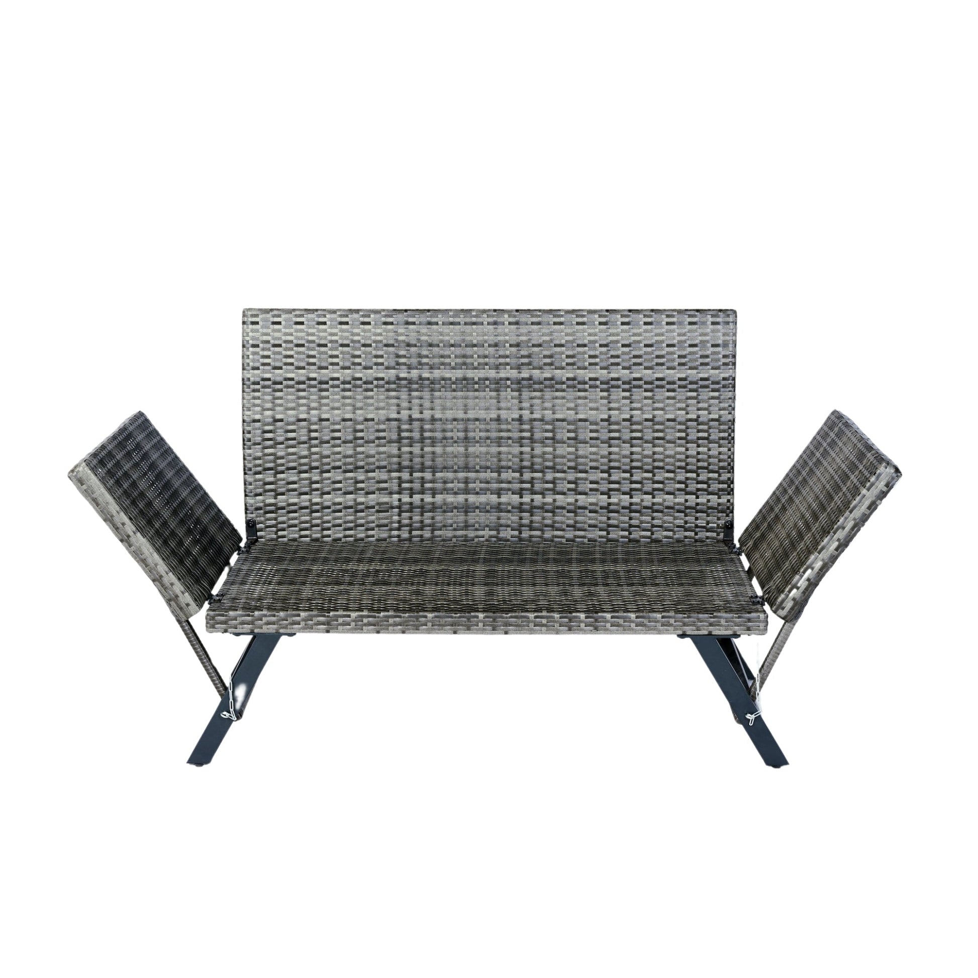 1 PCS Patio Wicker Side Foldable Bench Patio Backyard Conversation Bench Grey Wicker + Dark Grey Cushion