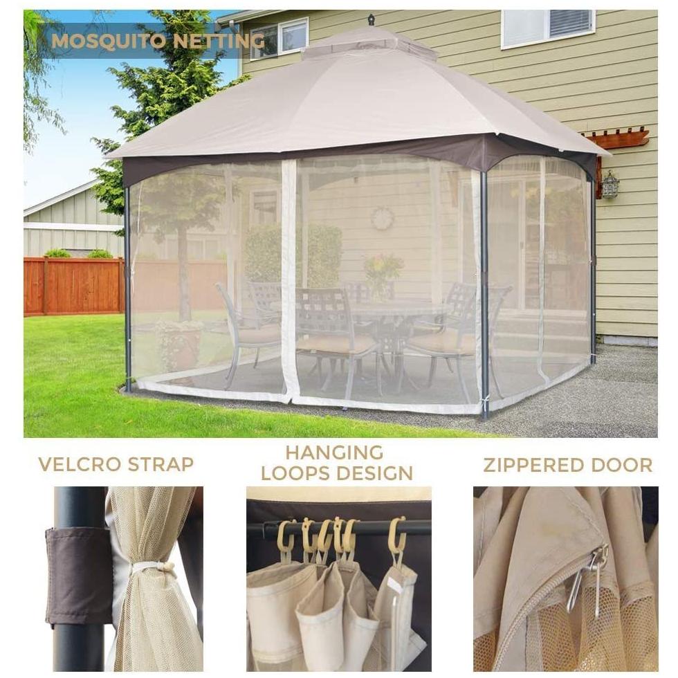 - Includes Hanging Curtains for Complete Privacy:Hanging curtains on the four pillars can completely cover the entire gazebo, when in use can prevent mosquitoes and insects from entering the gazebo, providing a clean party environment, but also shading, wind, rain.When not in use can be four hanging curtains can be stowed and hanged on the four pillars as a decorative, so as to make it more cozy and also to ensure that the gazebo's aesthetics.