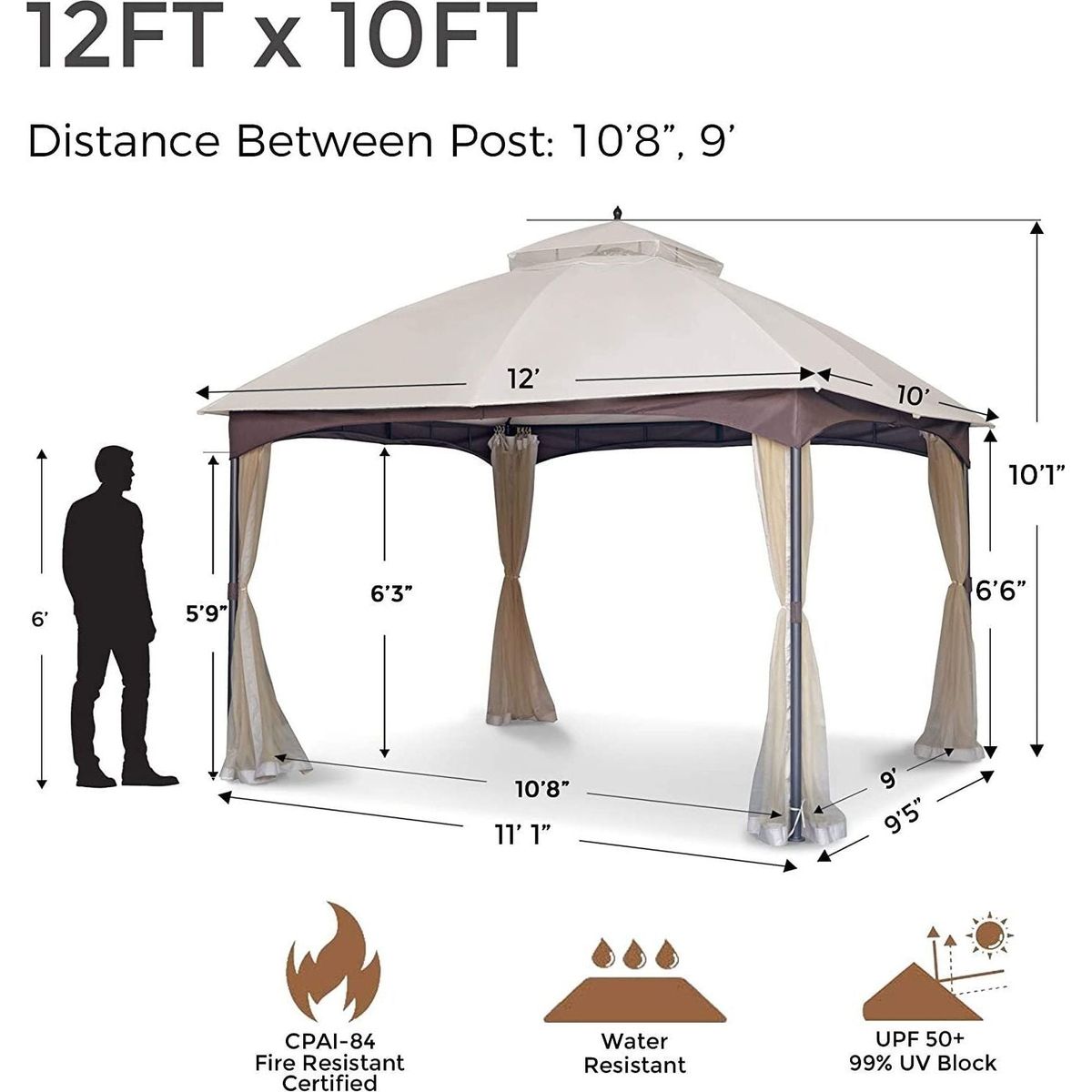 - Extra Large Outdoor Gazebo:Oversized outdoor gazebo: 10'*12' canopy provides oversized diameter space for shade and rain. The whole pergola tent can accommodate 6~9 people. Let you enjoy cool and comfortable with your family and friends on hot summer days.