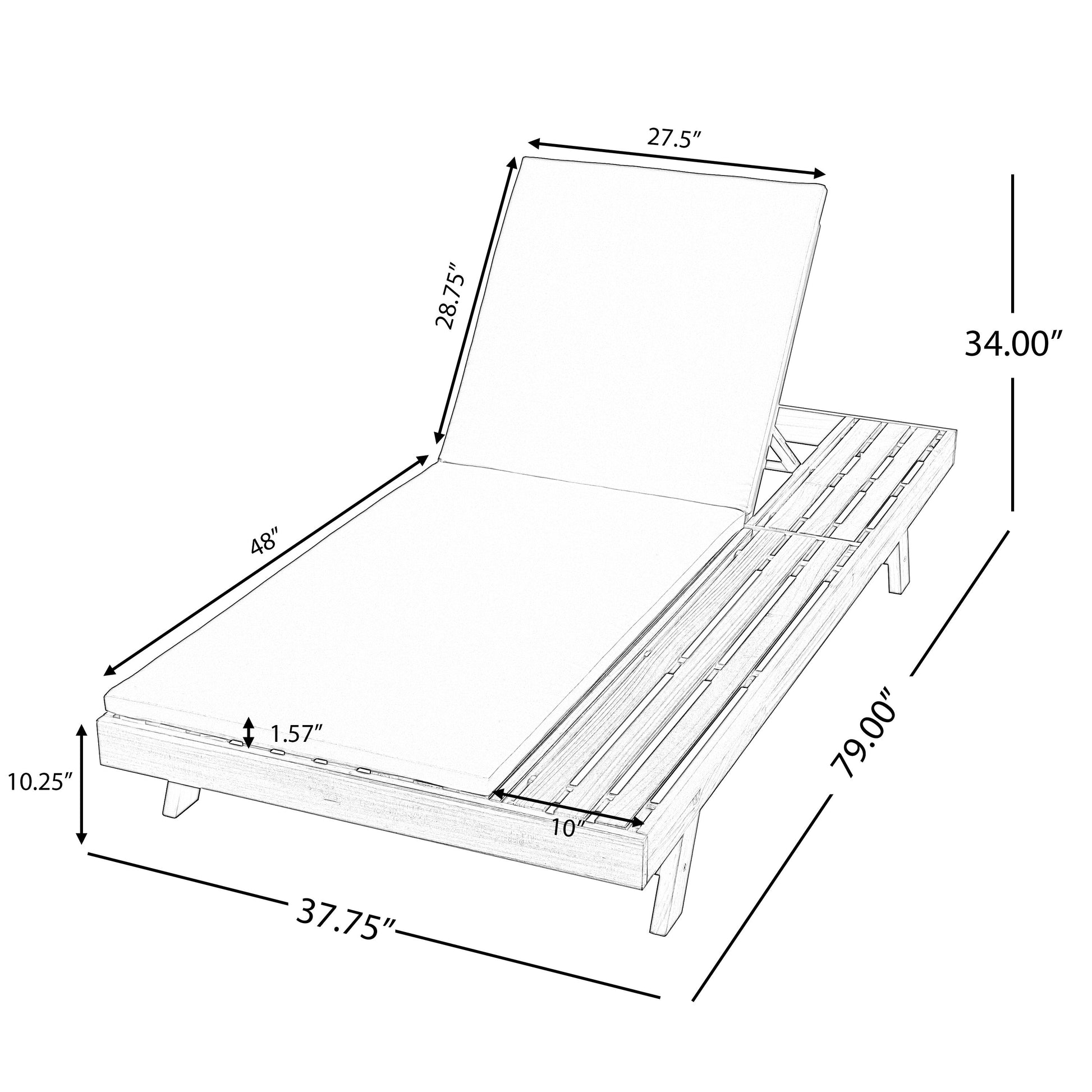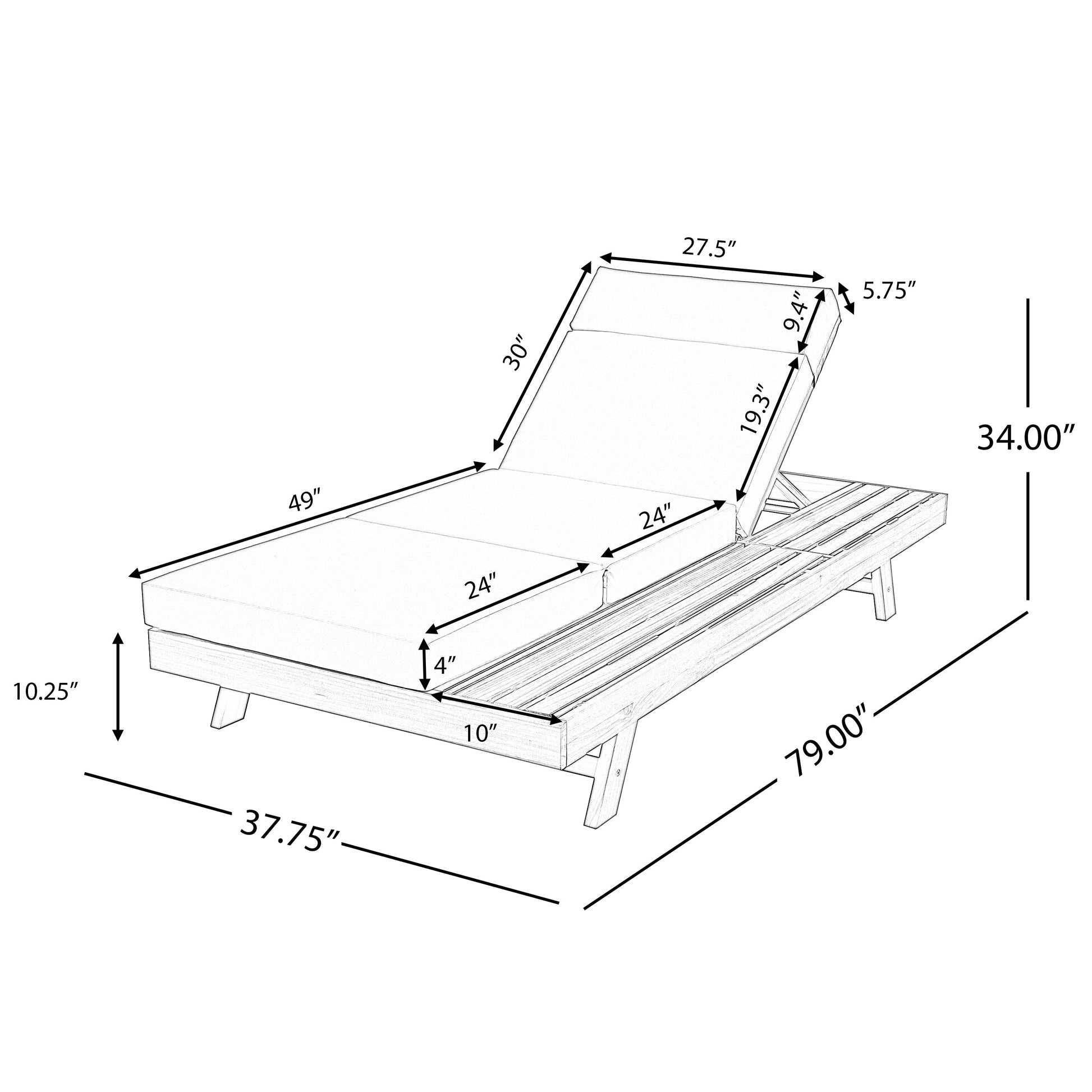 - DIMENSIONS: Measuring 79'L × 37.75'W × 34'H (at max recline), this versatile chaise provides ample lounging space with an ergonomic design. The foldable section (27.5 inches wide) has four levels of adjustability, while the adjustable backrest (up to 34' height) offers customizable comfort. The generous width maintains stability, perfect for patios, pool decks, or garden relaxation.