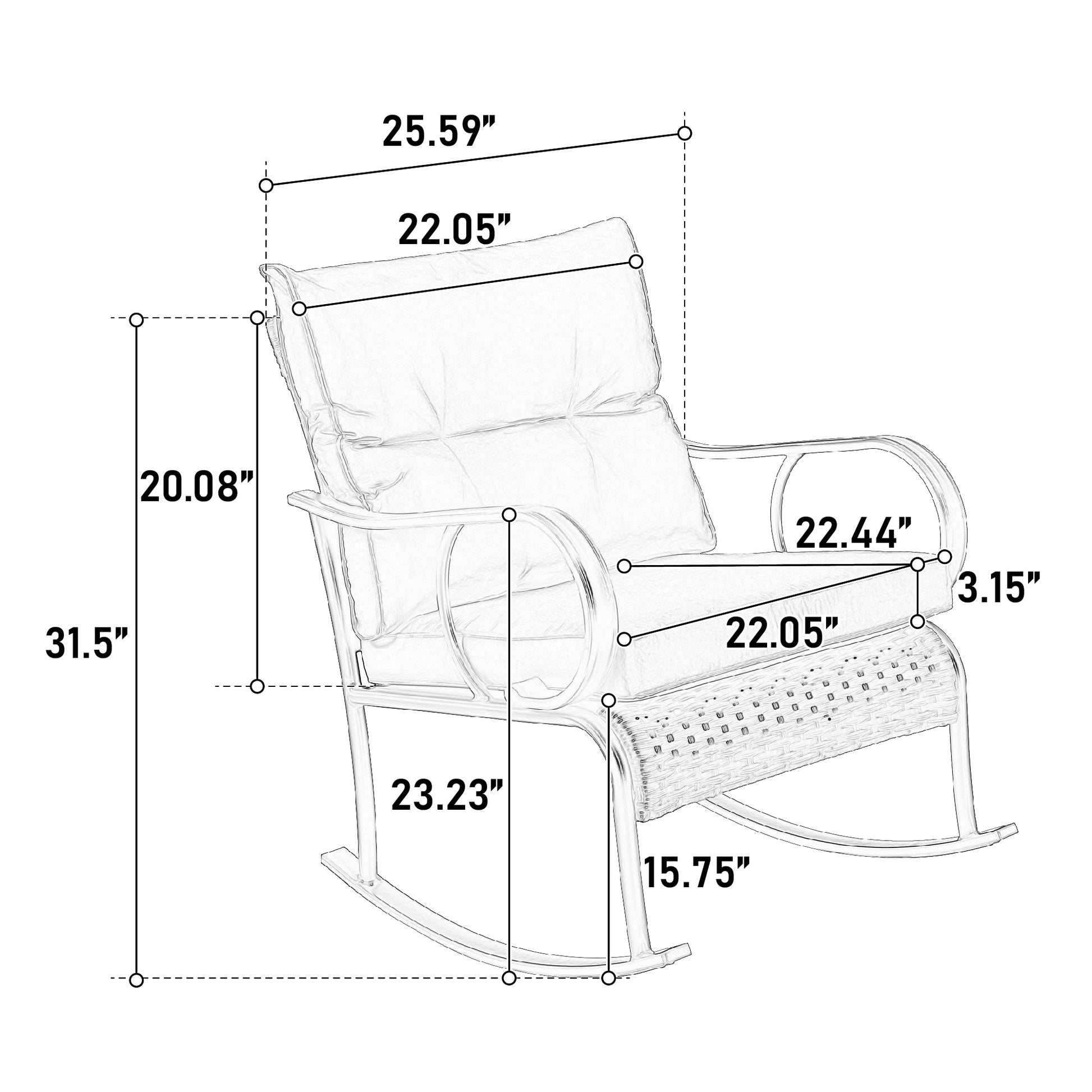 3 Pieces Patio Furniture Set Rocking Bistro Set Outdoor Rattan Conversation with Coffee Table for Garden Balcony Backyard Poolside