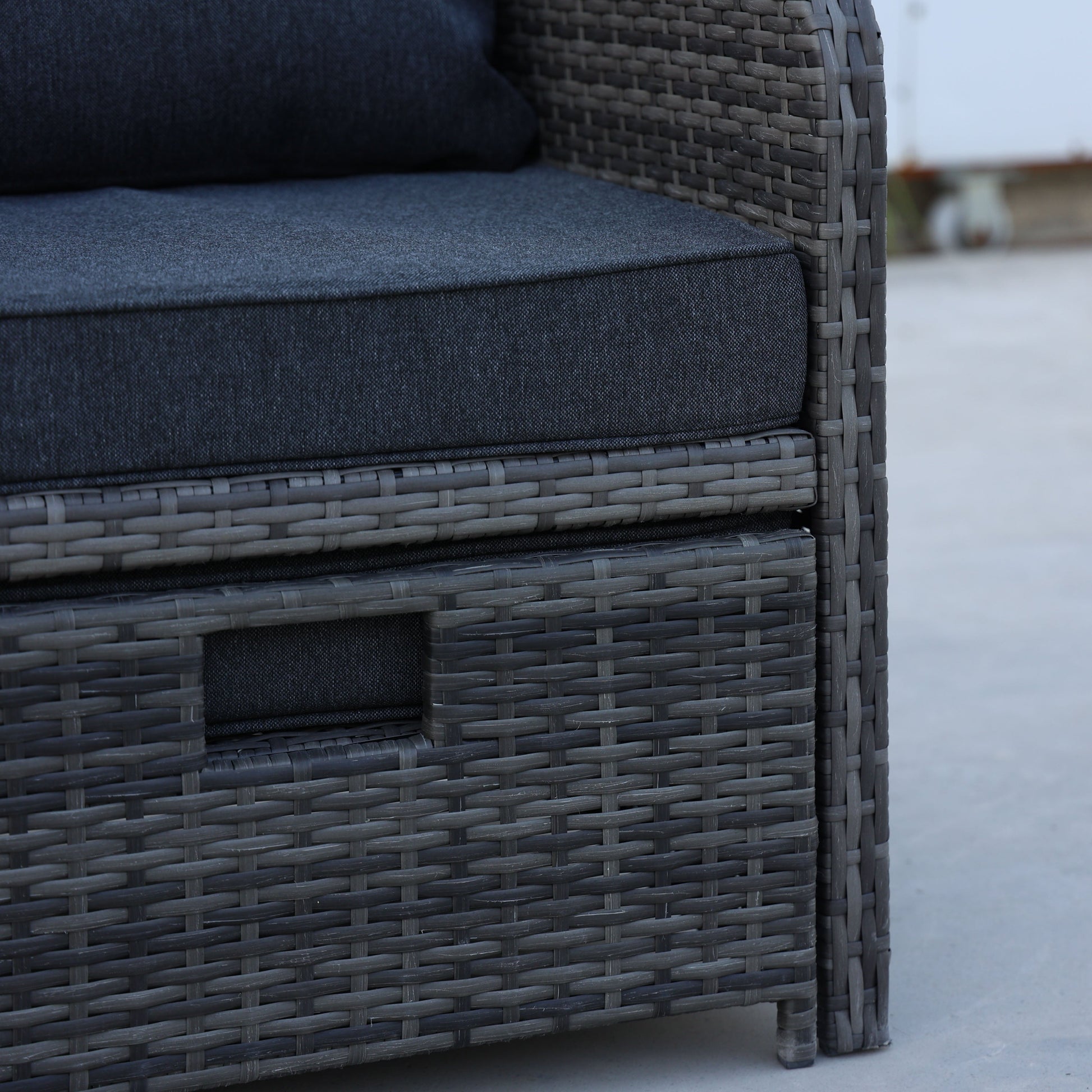 - Space Saving Design: The ottoman of our wicker patio conversation chairs set is cleverly designed to be tucked under the chair, maximizing space efficiency. By storing it under the chairs when not in use, you can greatly reduce the amount of space it takes up. If you're in need of a patio rattan furniture set that will save you valuable space, look no further than this 5-piece wicker furniture set