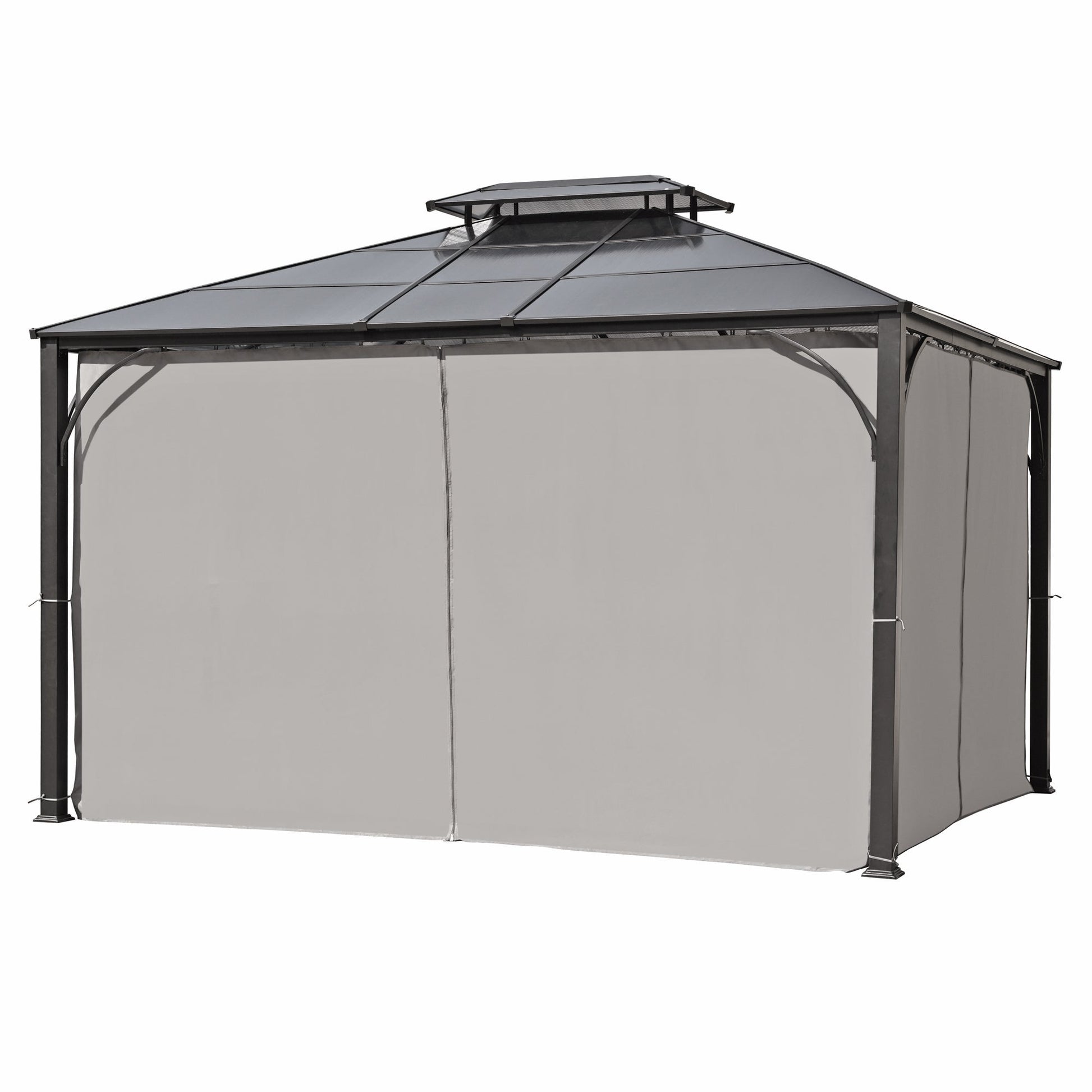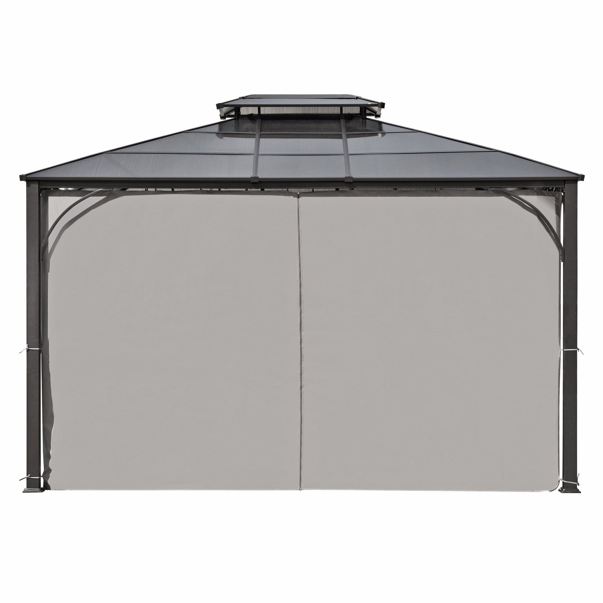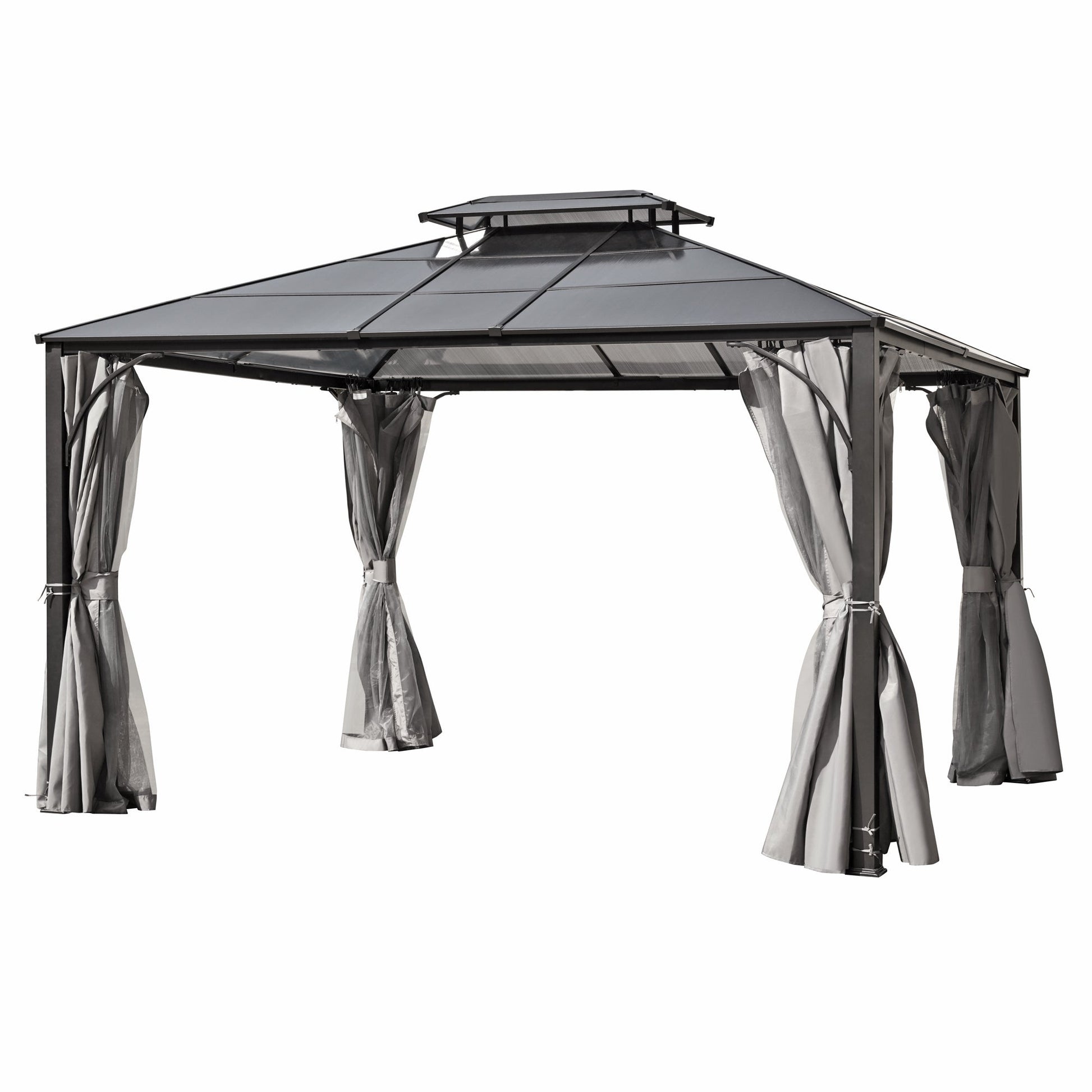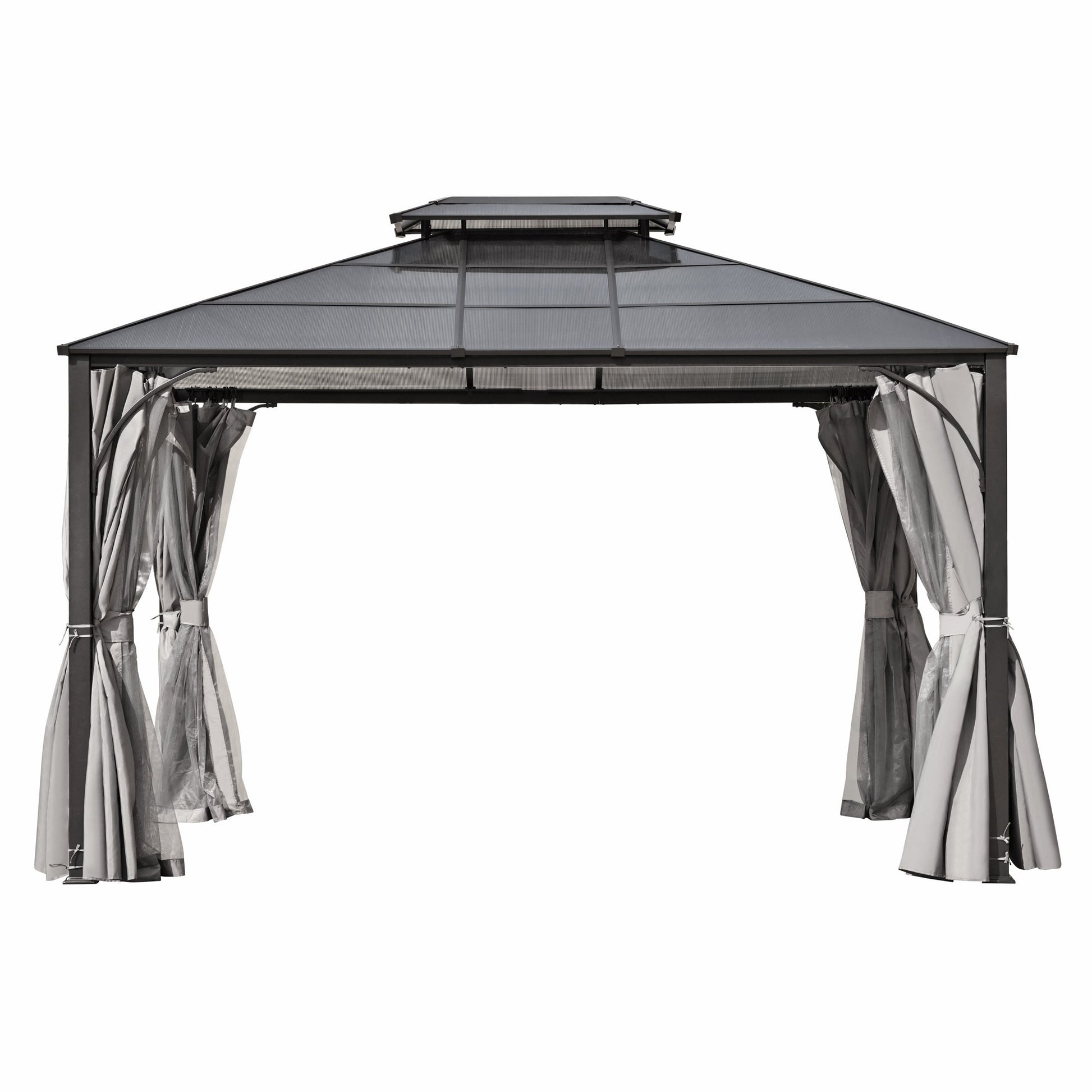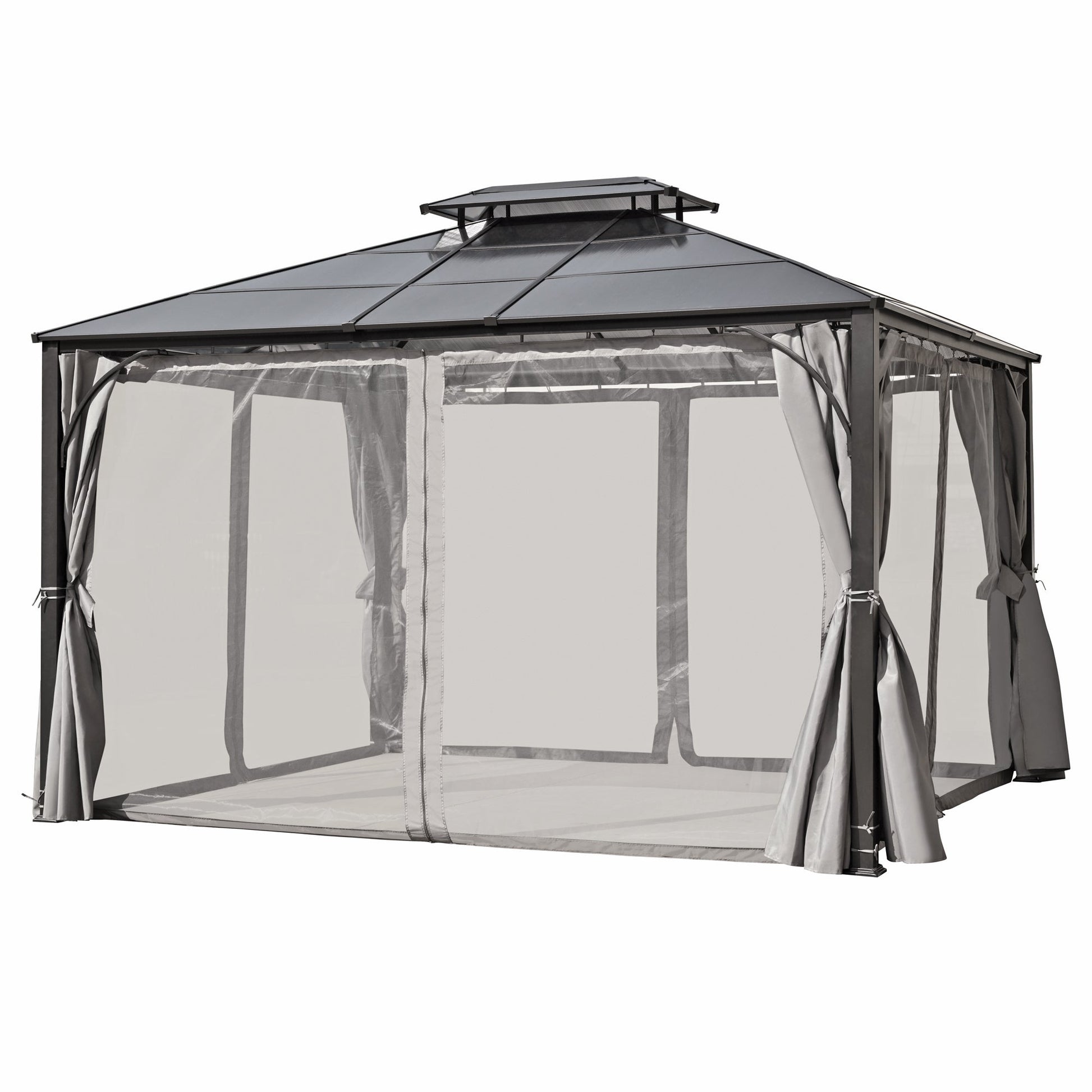 TREXM 10'x12' Hardtop Outdoor Gazebo, Heavy Duty Double Roof Patio Gazebo with Aluminum Frame, Double-Layer Side Walls Mosquito Netting & Privacy Curtains for Patio, Garden, Backyard (Grey)