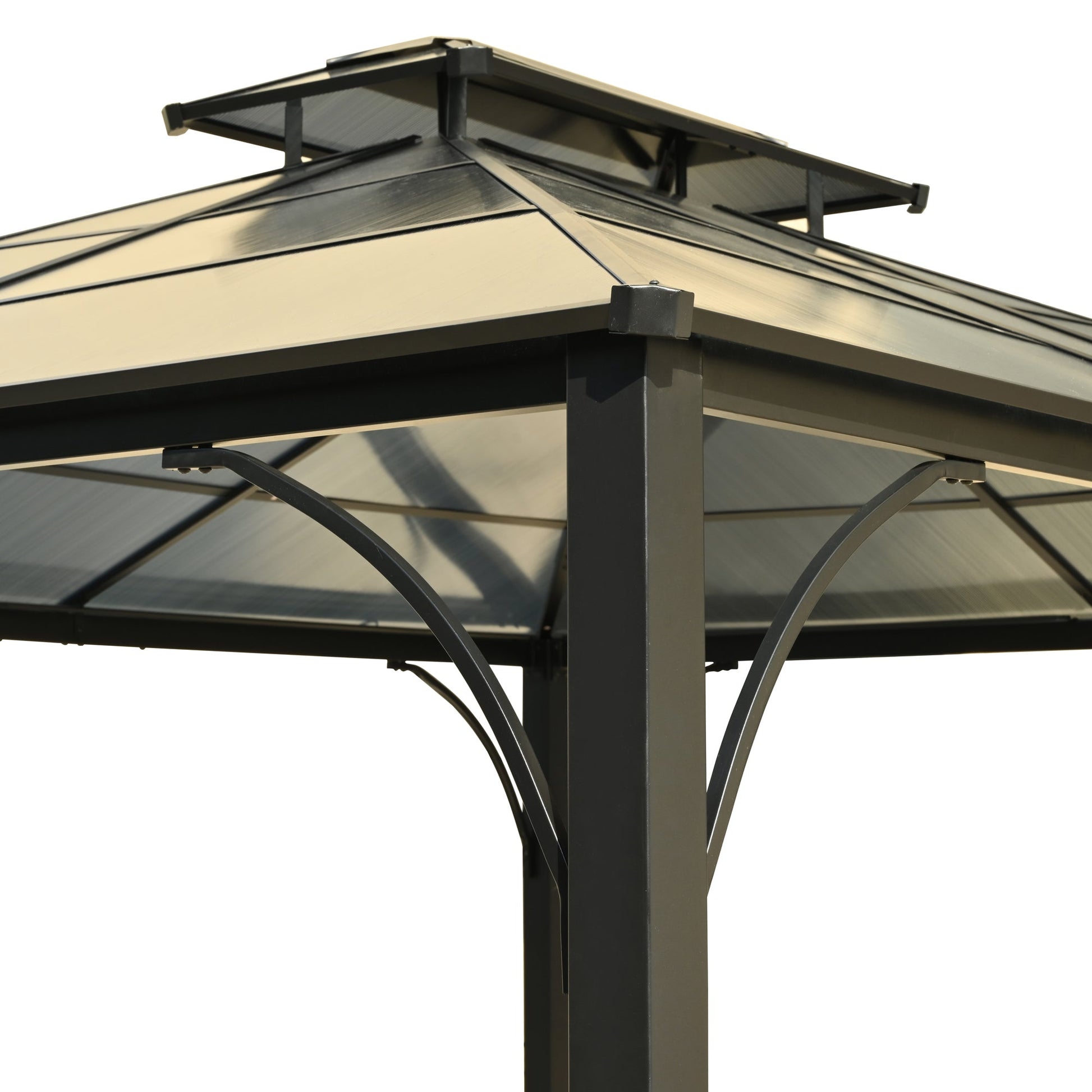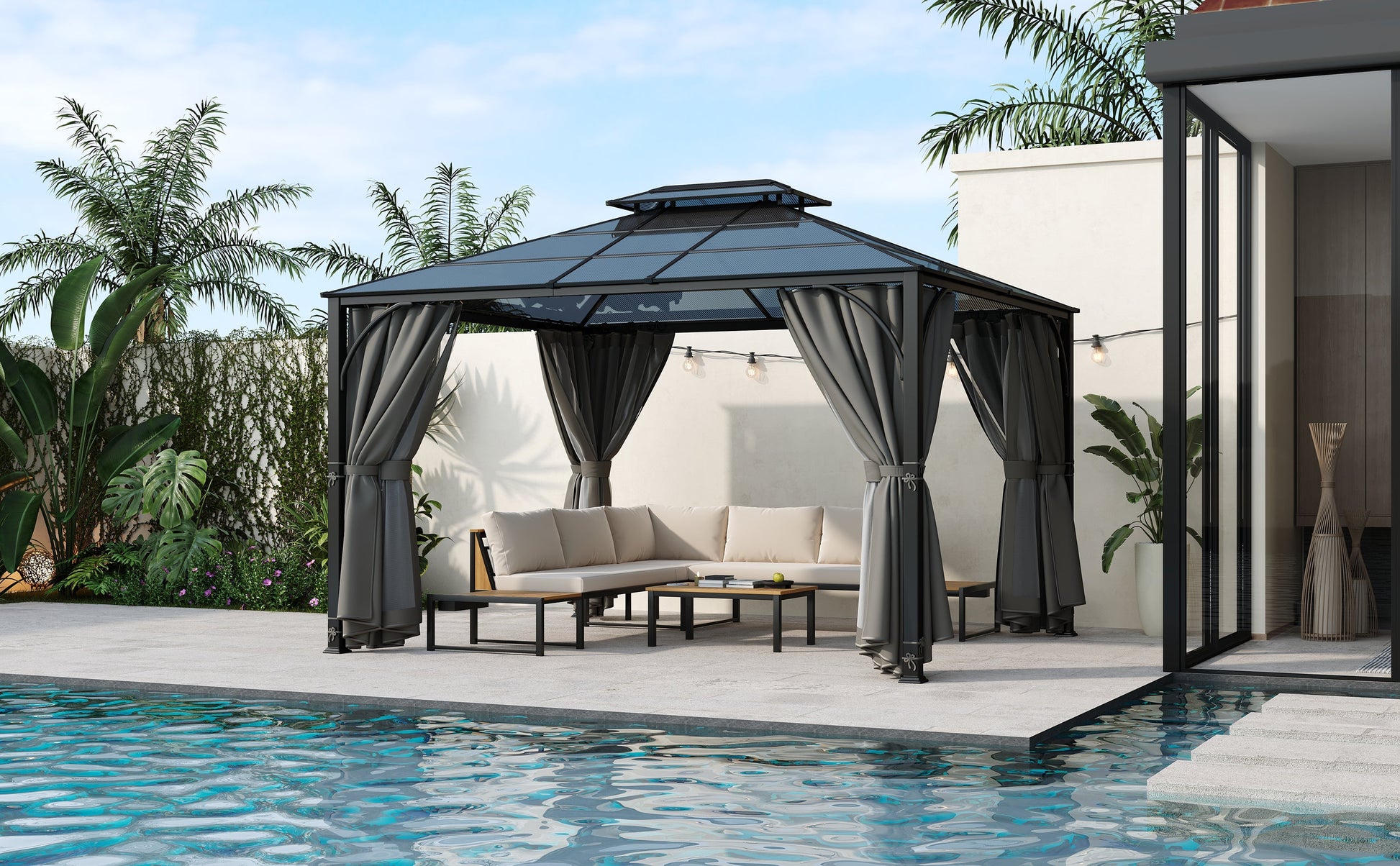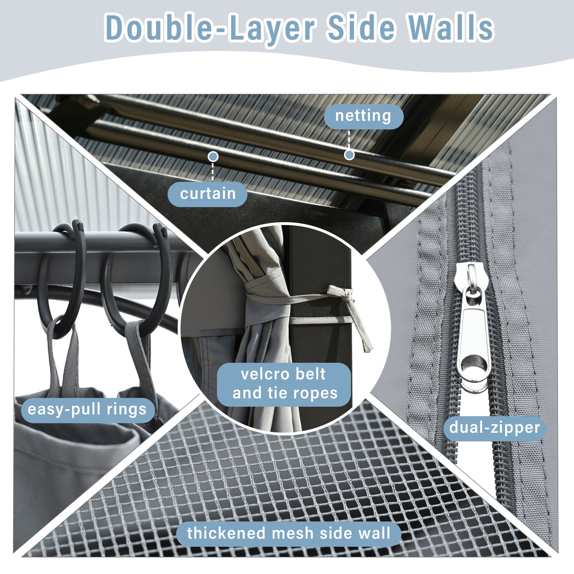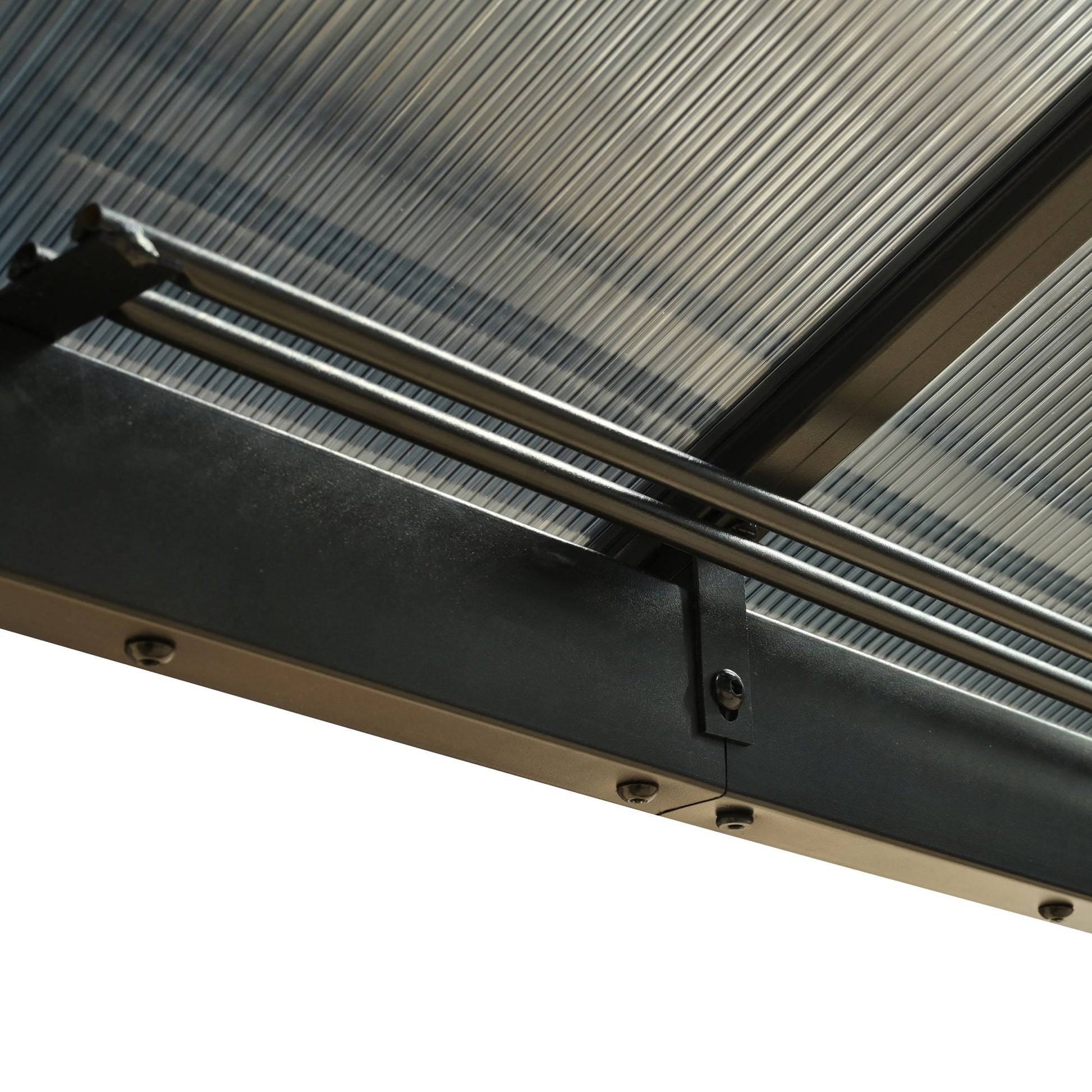 - Premium Double-Layer PC Roof: Featuring a durable polycarbonate (PC) roof panel that blocks 99% UV rays while allowing soft light transmission. The innovative double-layer roof design enhances ventilation, the lower ventilated layer reduces heat buildup for cooler shade. The sloped design prevents water pooling, ensuring year-round protection for your patio, garden, or campsite.