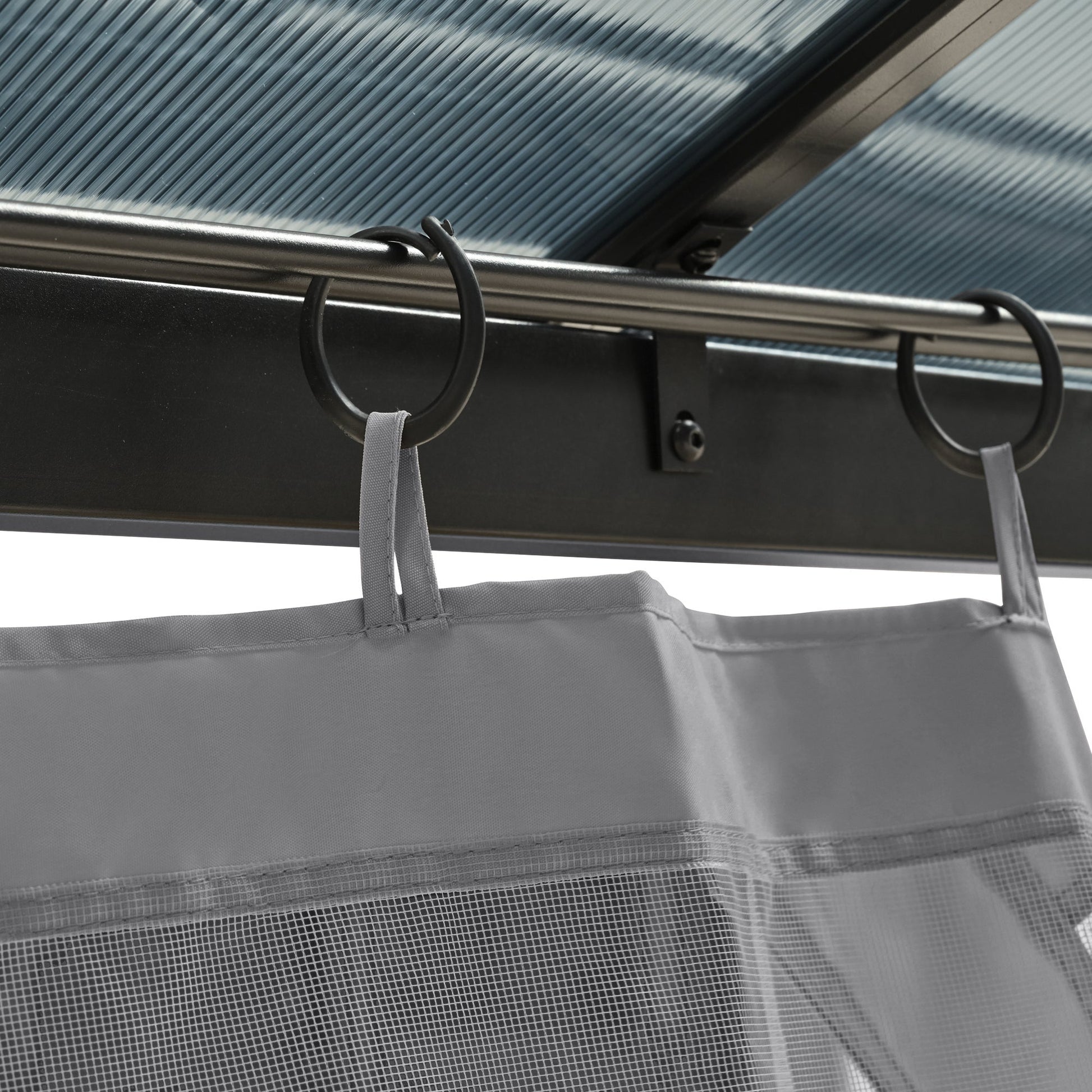 | Material | Frame: aluminum+steel Roof: polycarbonate Curtain: polyester |